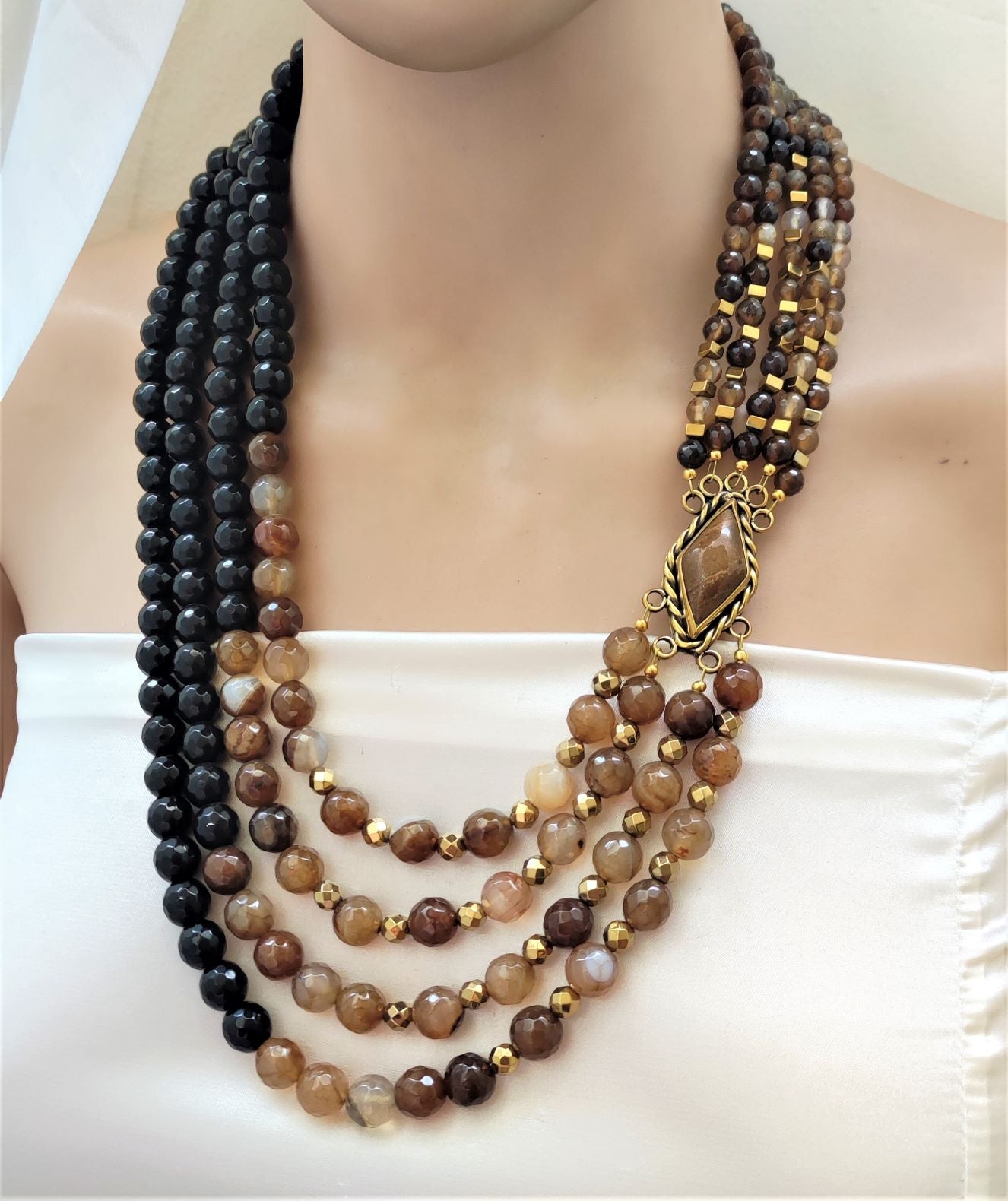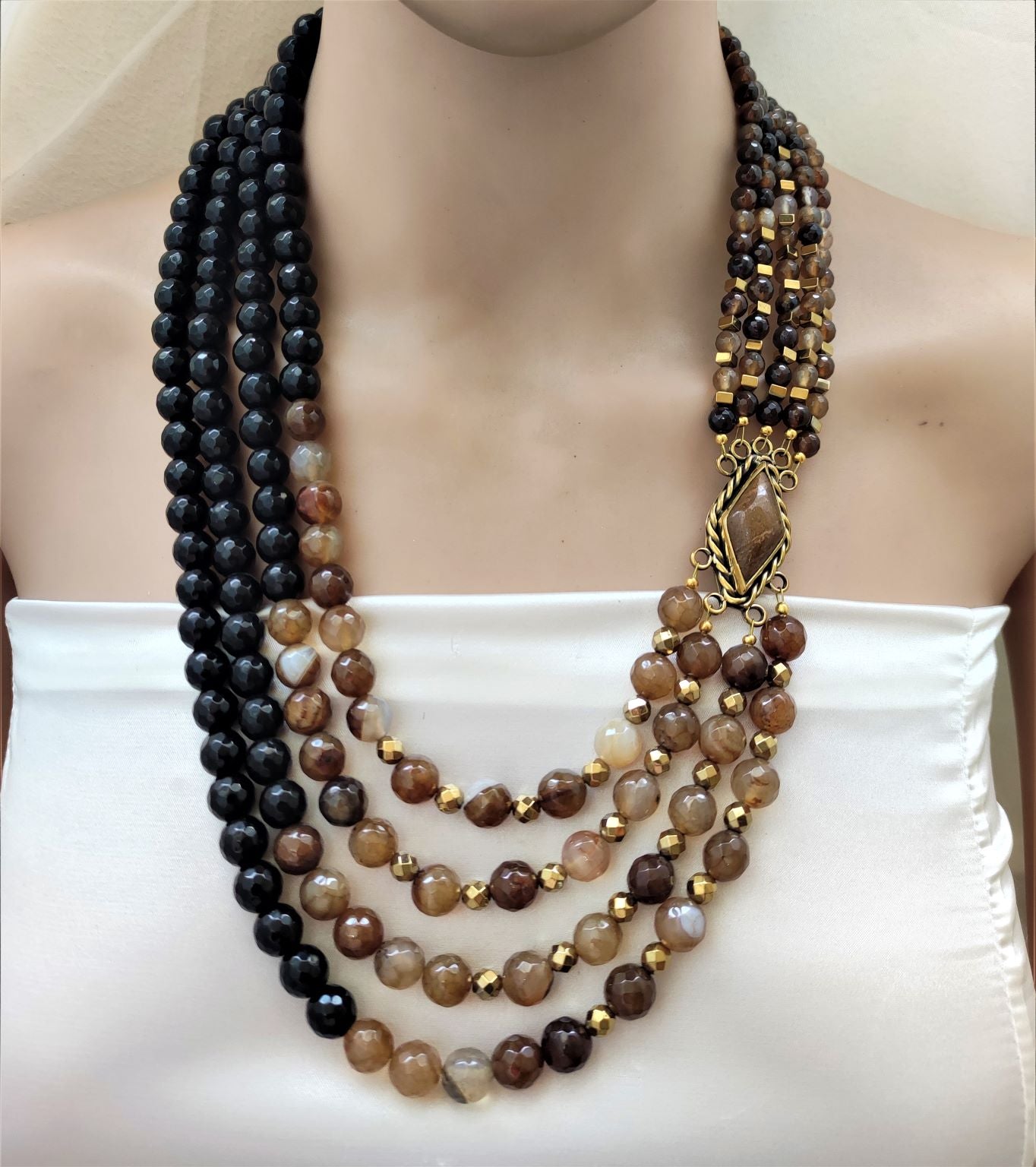 عقد من العقيق الطبيعي و النحاس