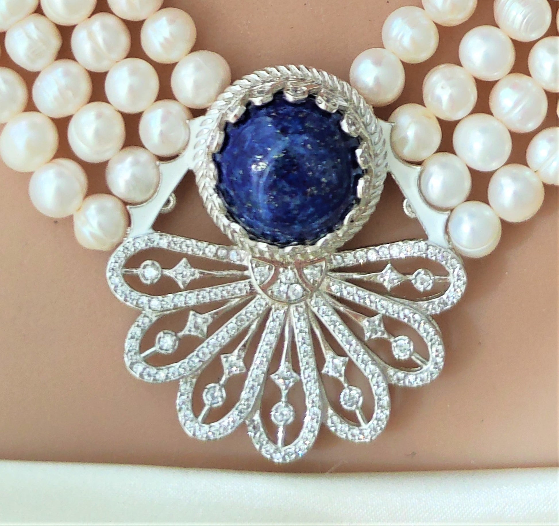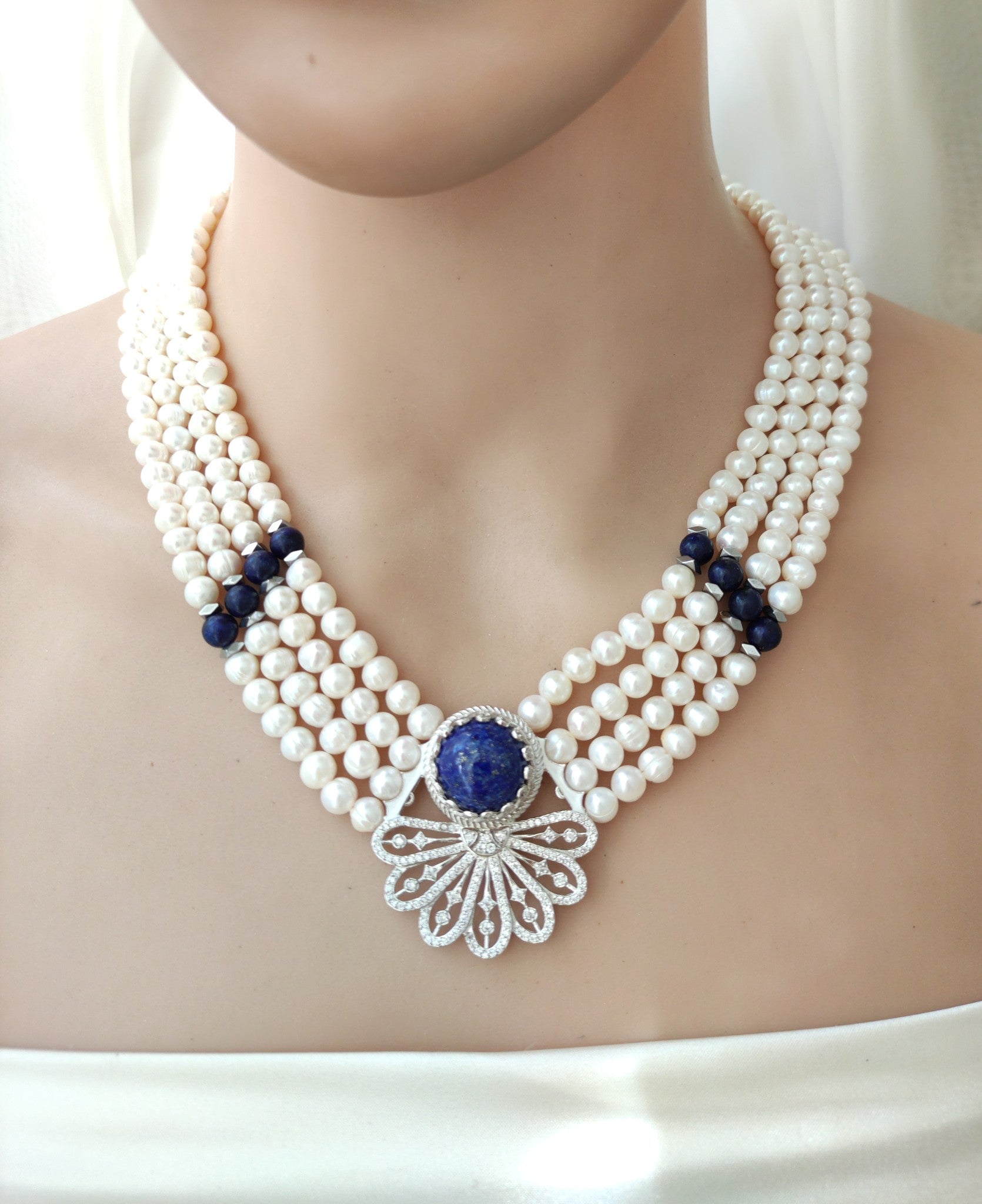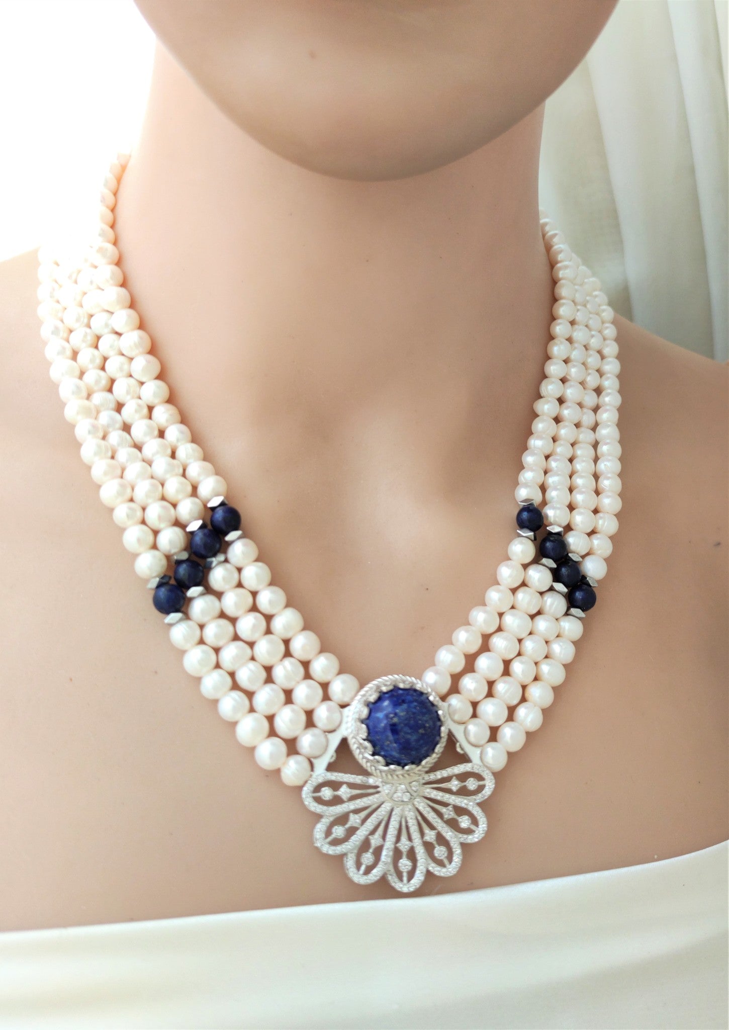 الاحجار المستخدمه : لؤلؤ مزارع طبيعي و لابس لازولي و هيماتيت طبيعي