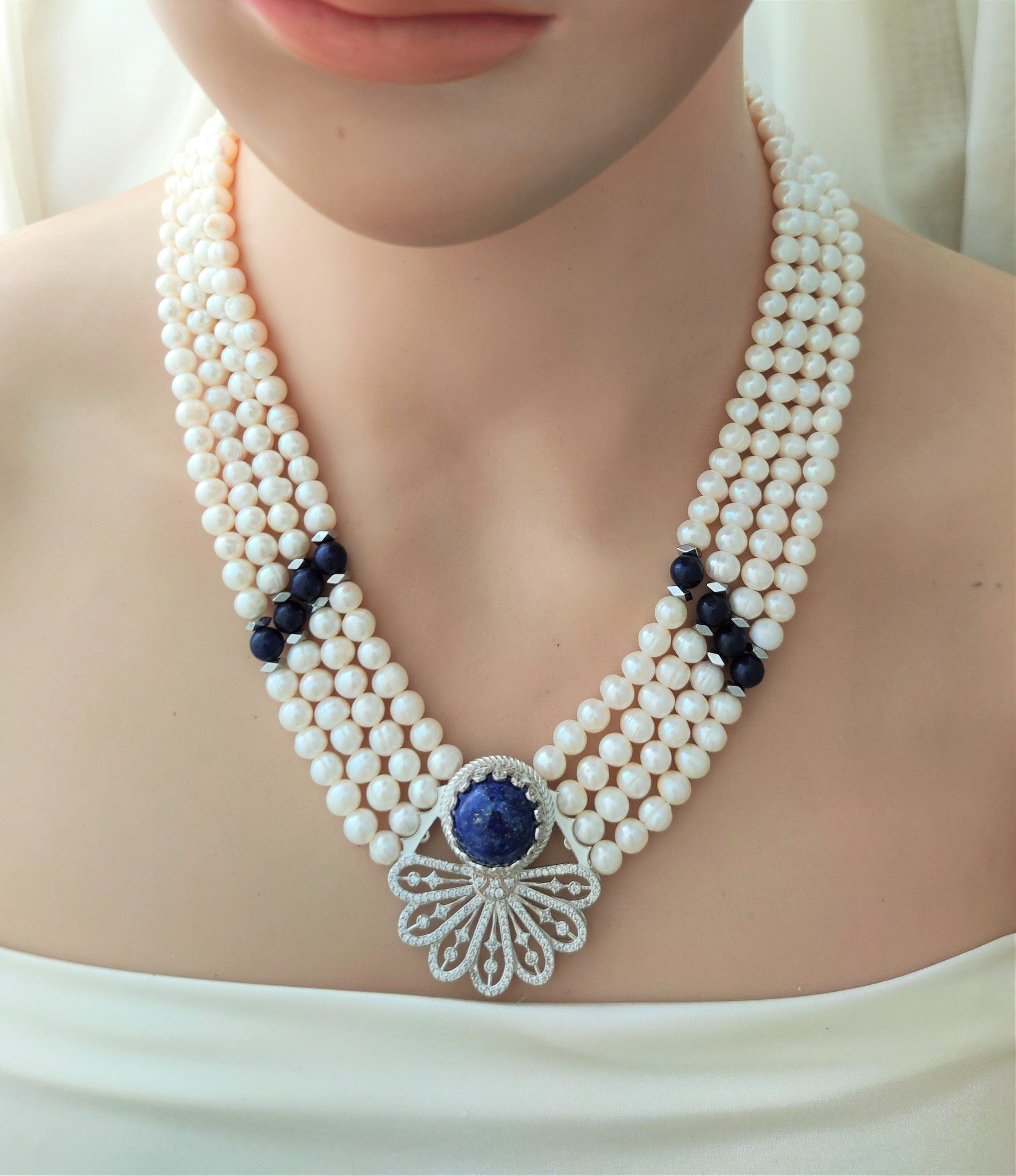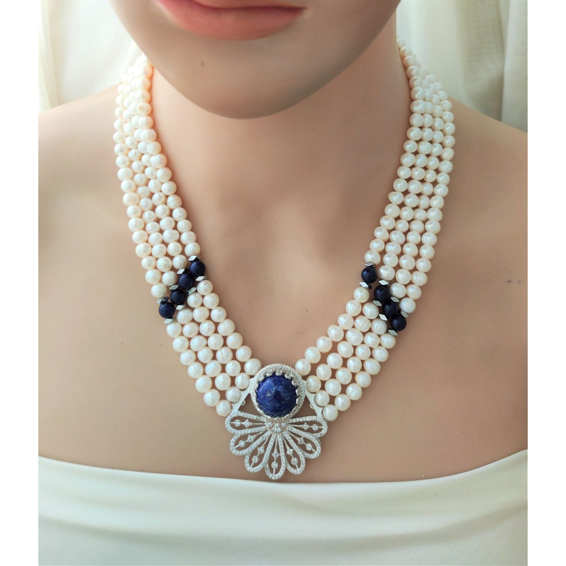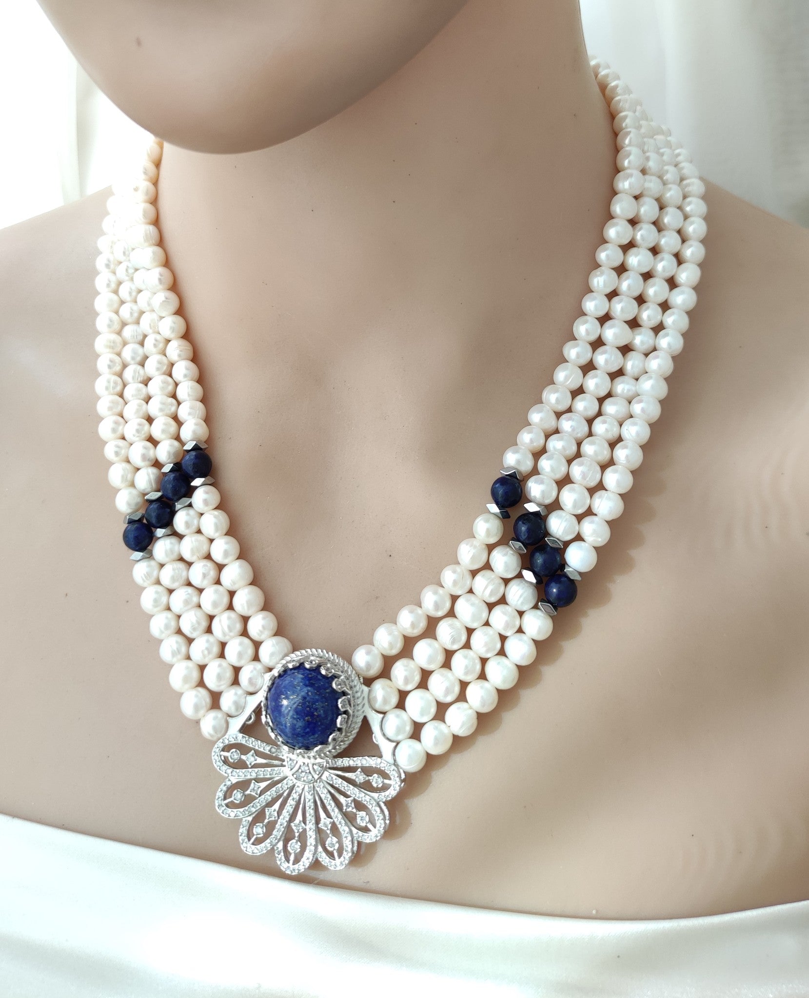 الاحجار المستخدمه : لؤلؤ مزارع طبيعي و لابس لازولي و هيماتيت طبيعي