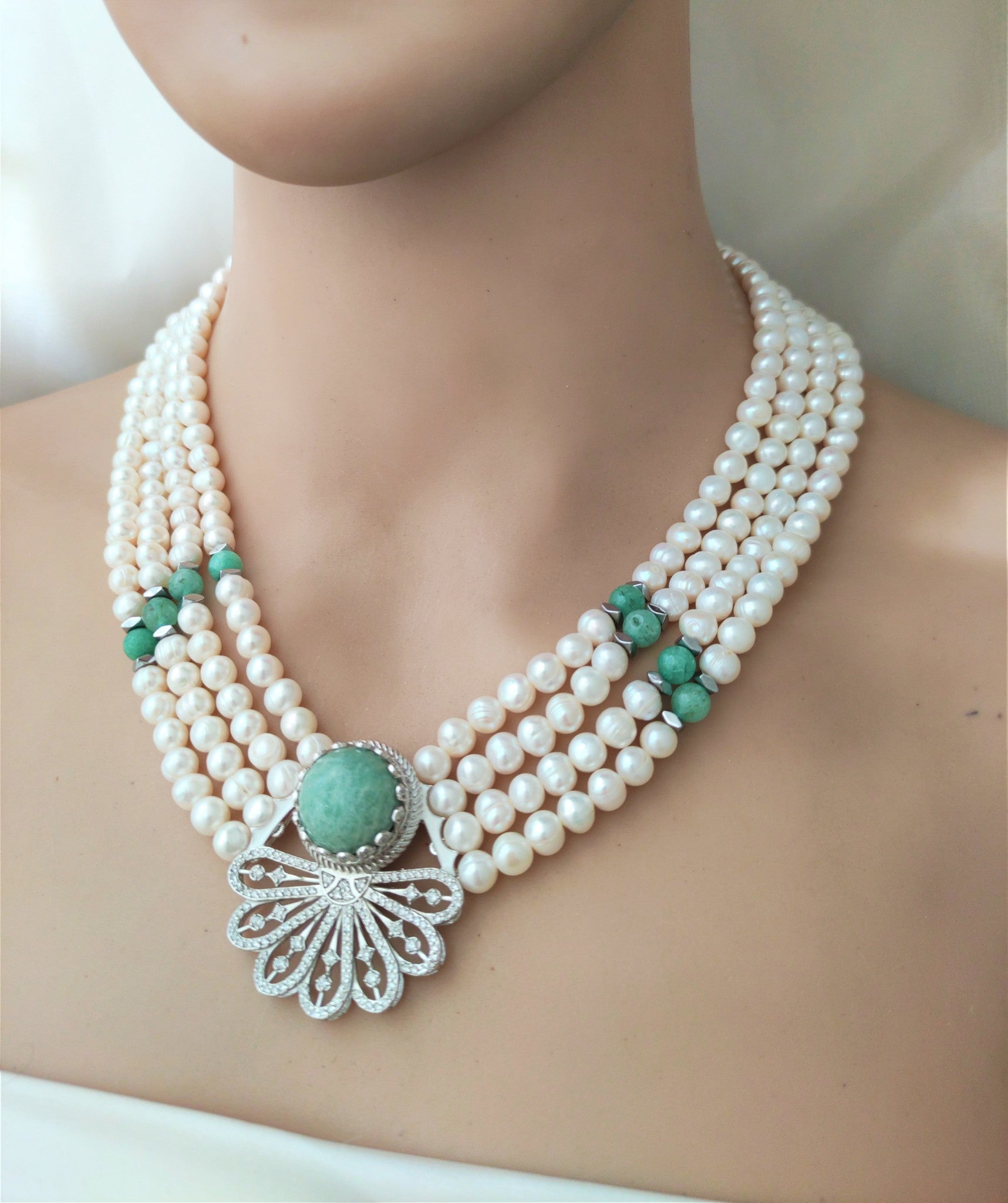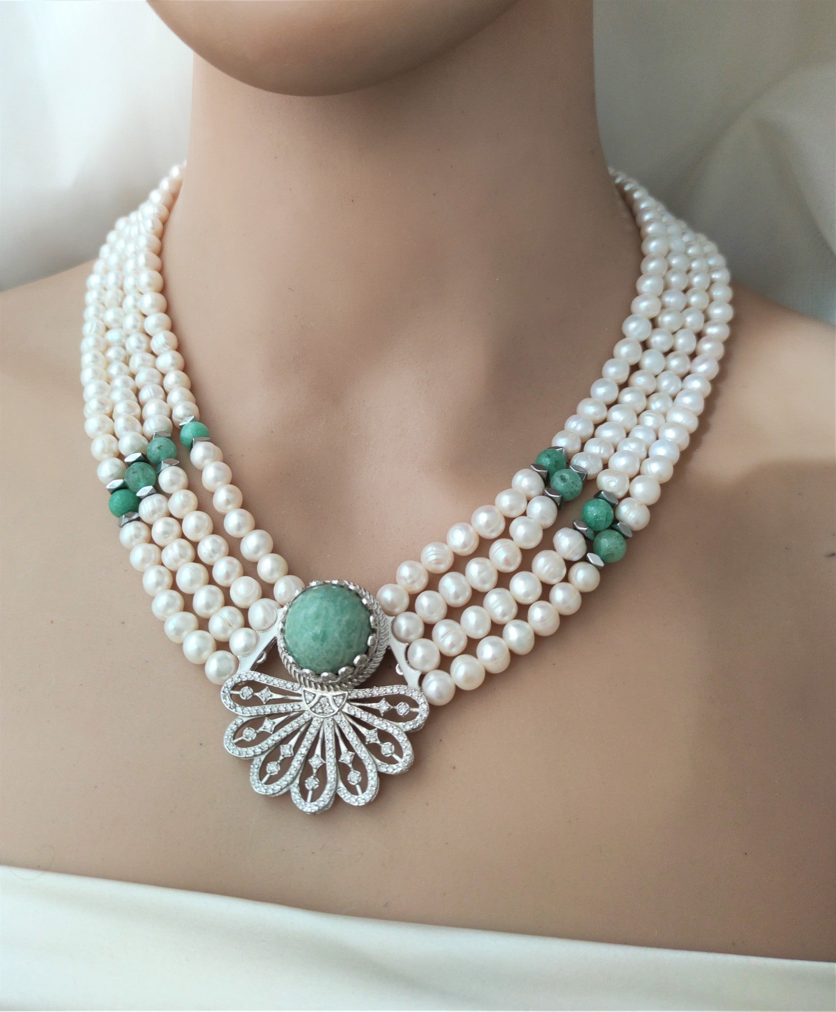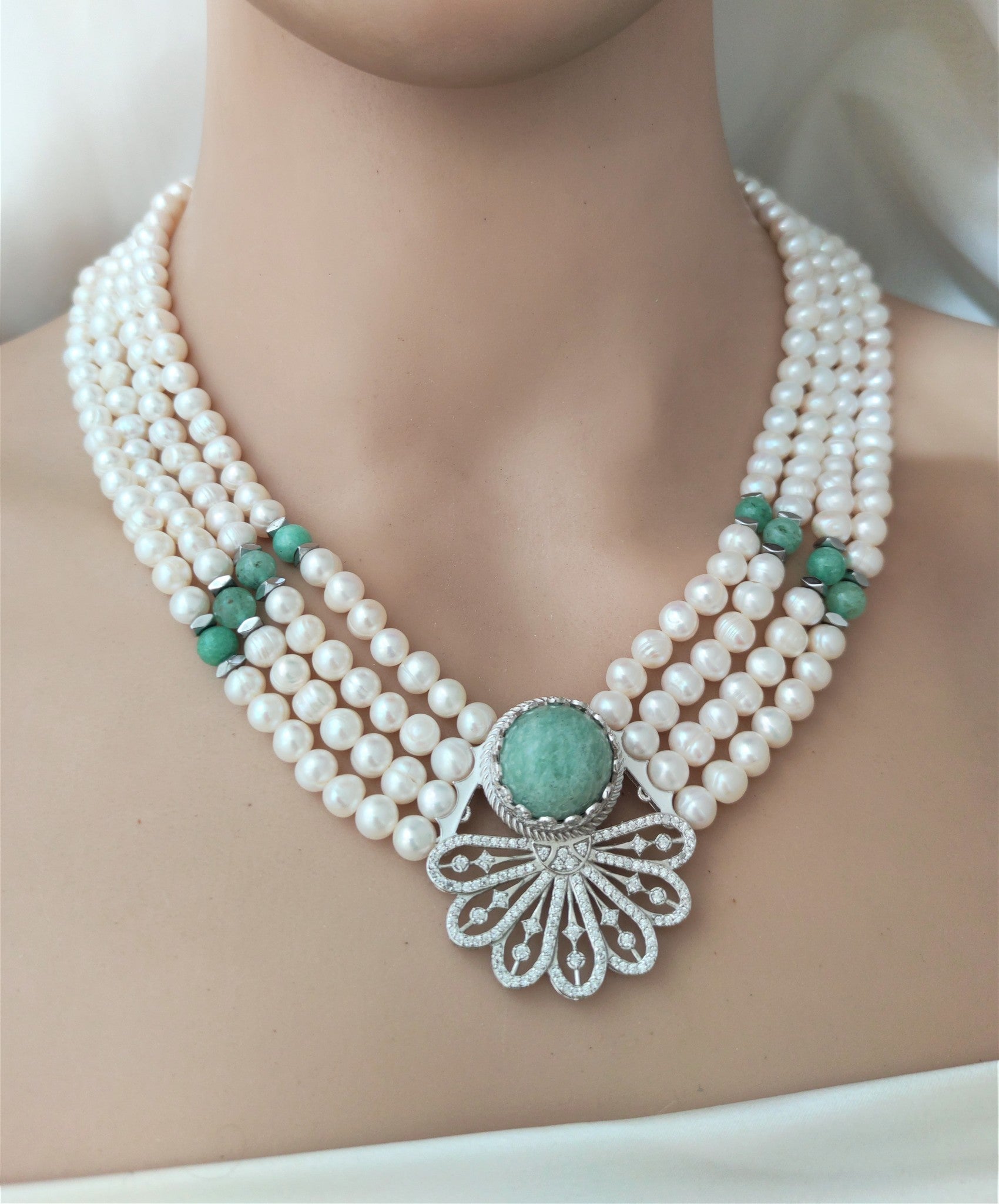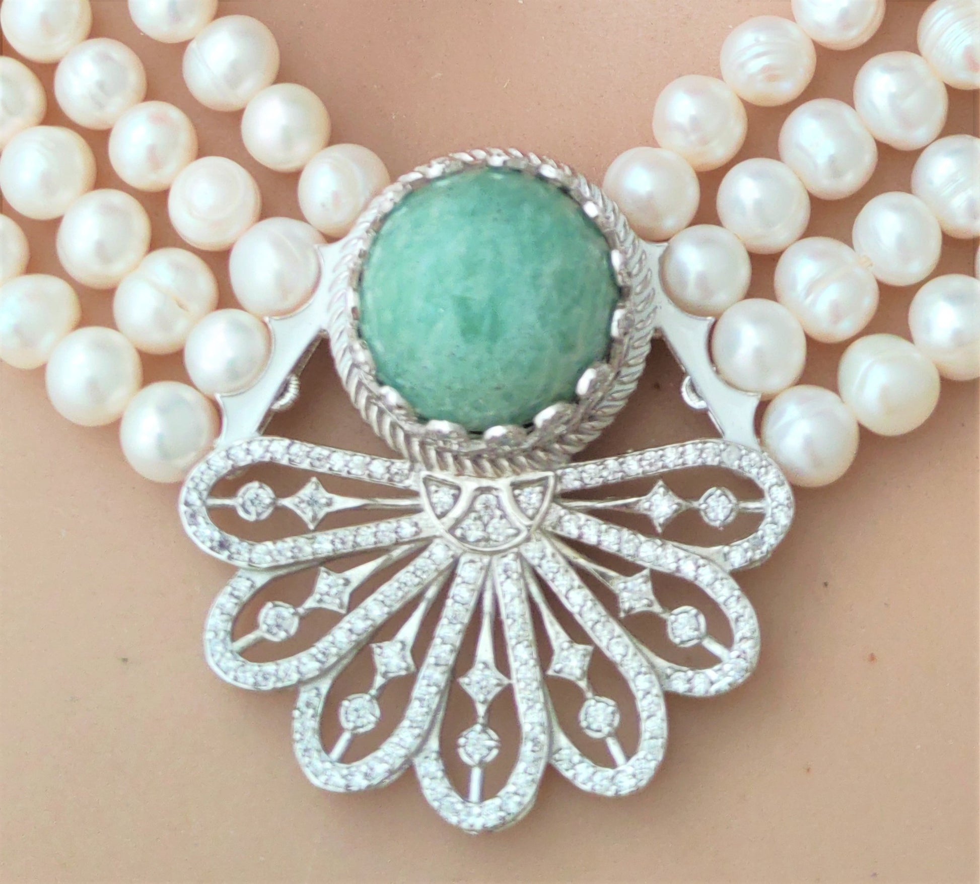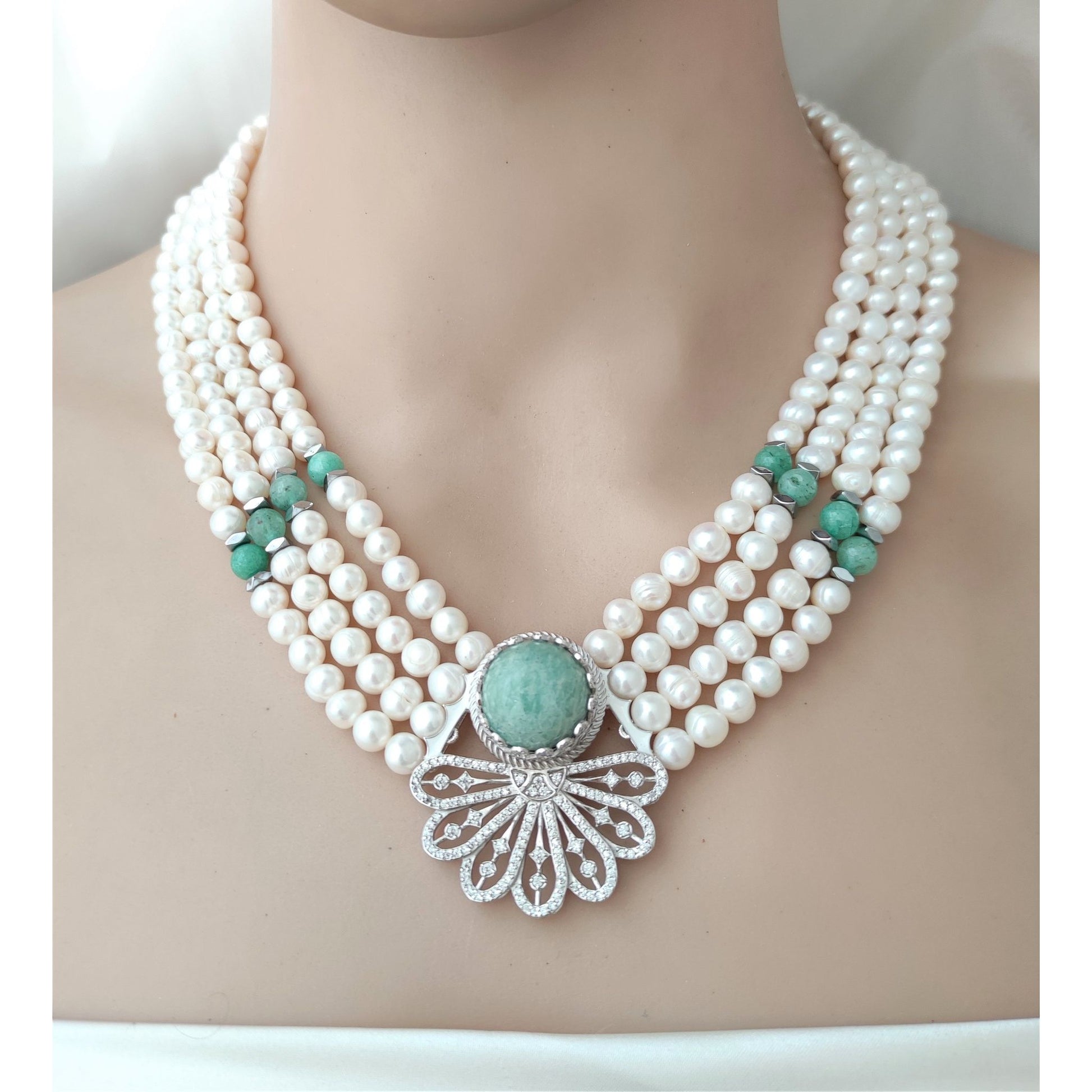 الاحجار المستخدمه : لؤلؤ مزارع طبيعي وامازونيت طبيعي و هيماتيت طبيعي
