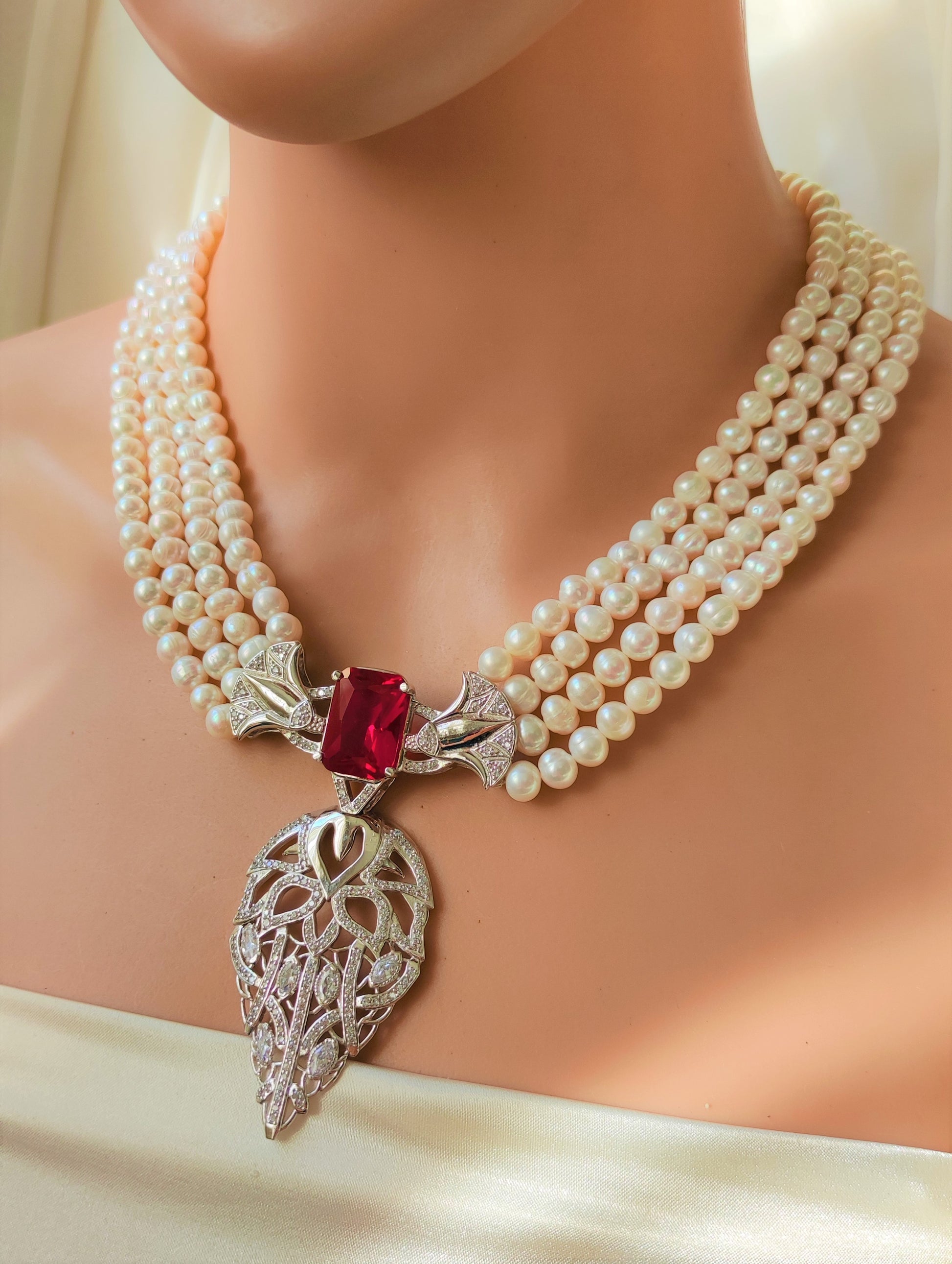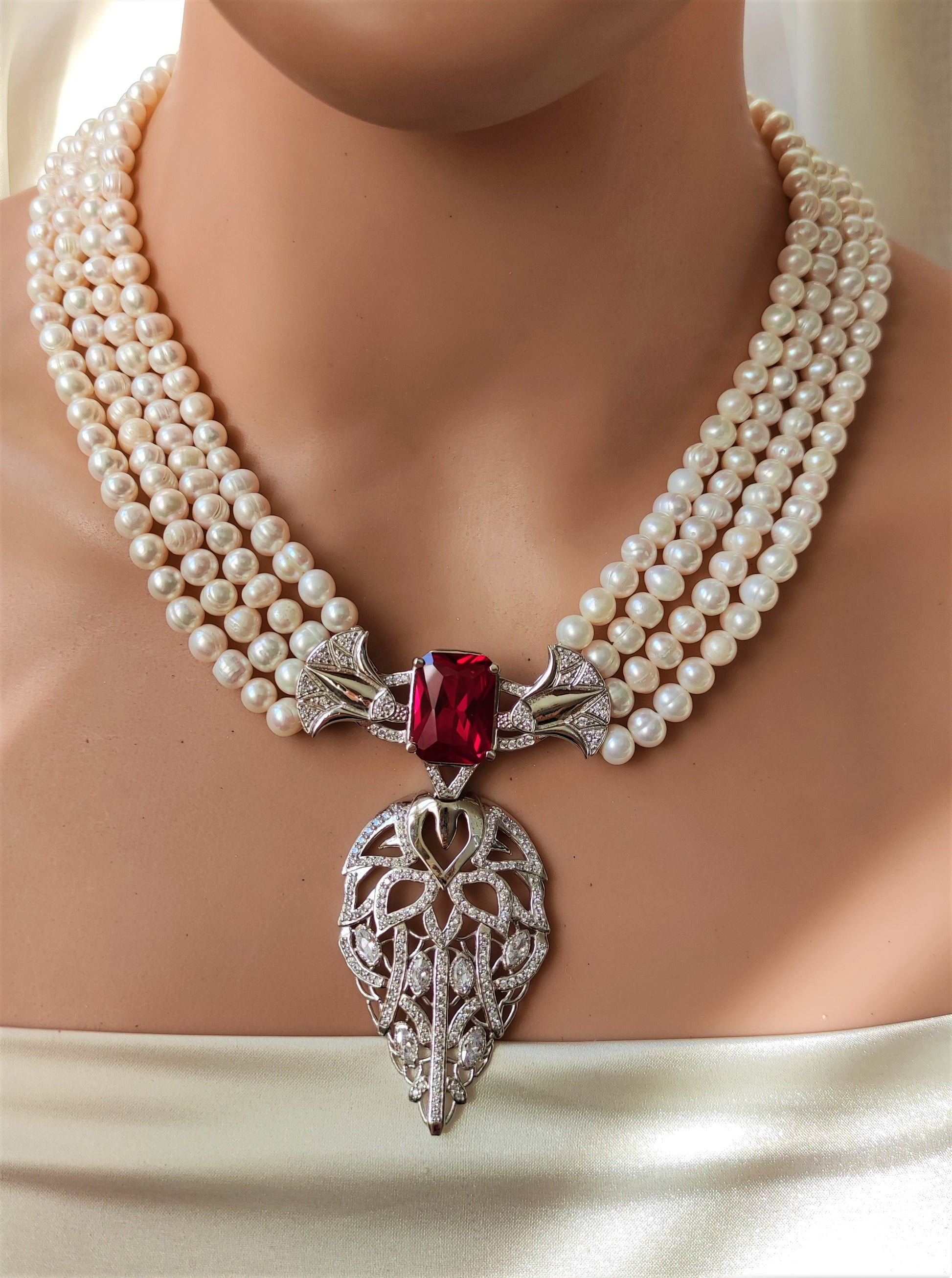 الاحجار المستخدمه : لؤلؤ مزارع طبيعي