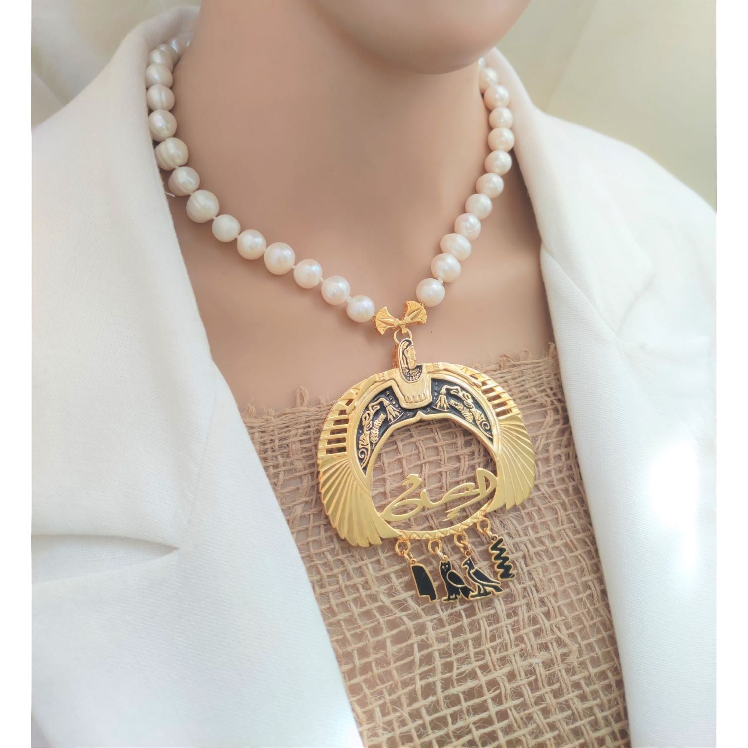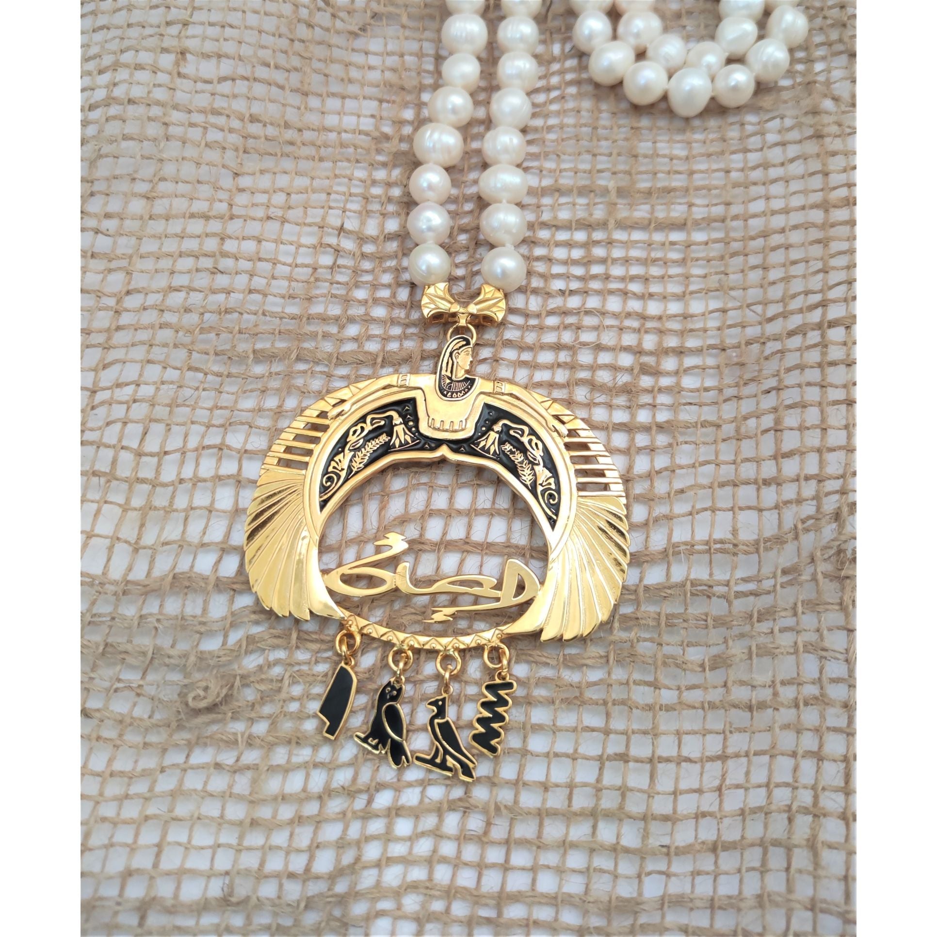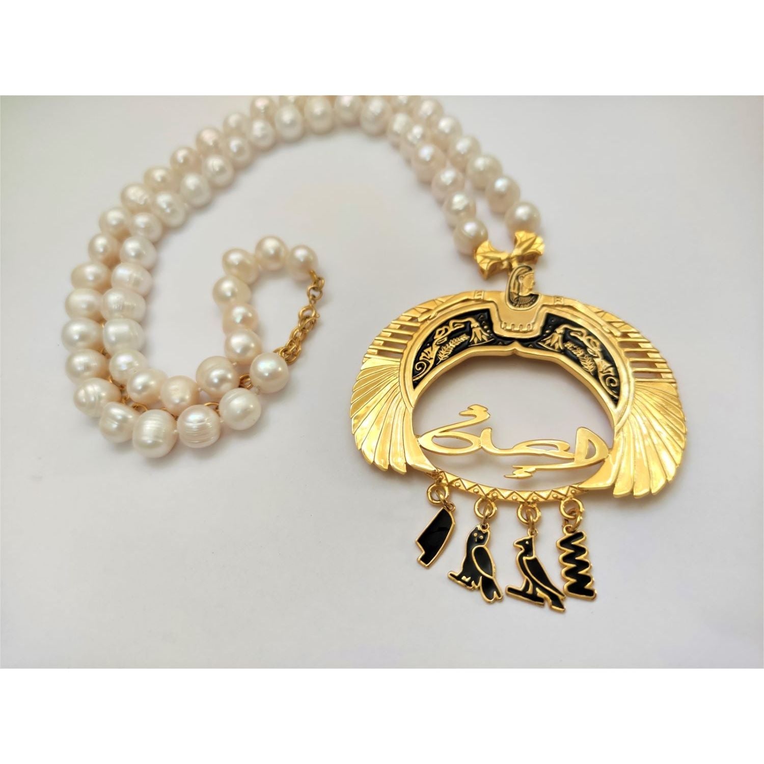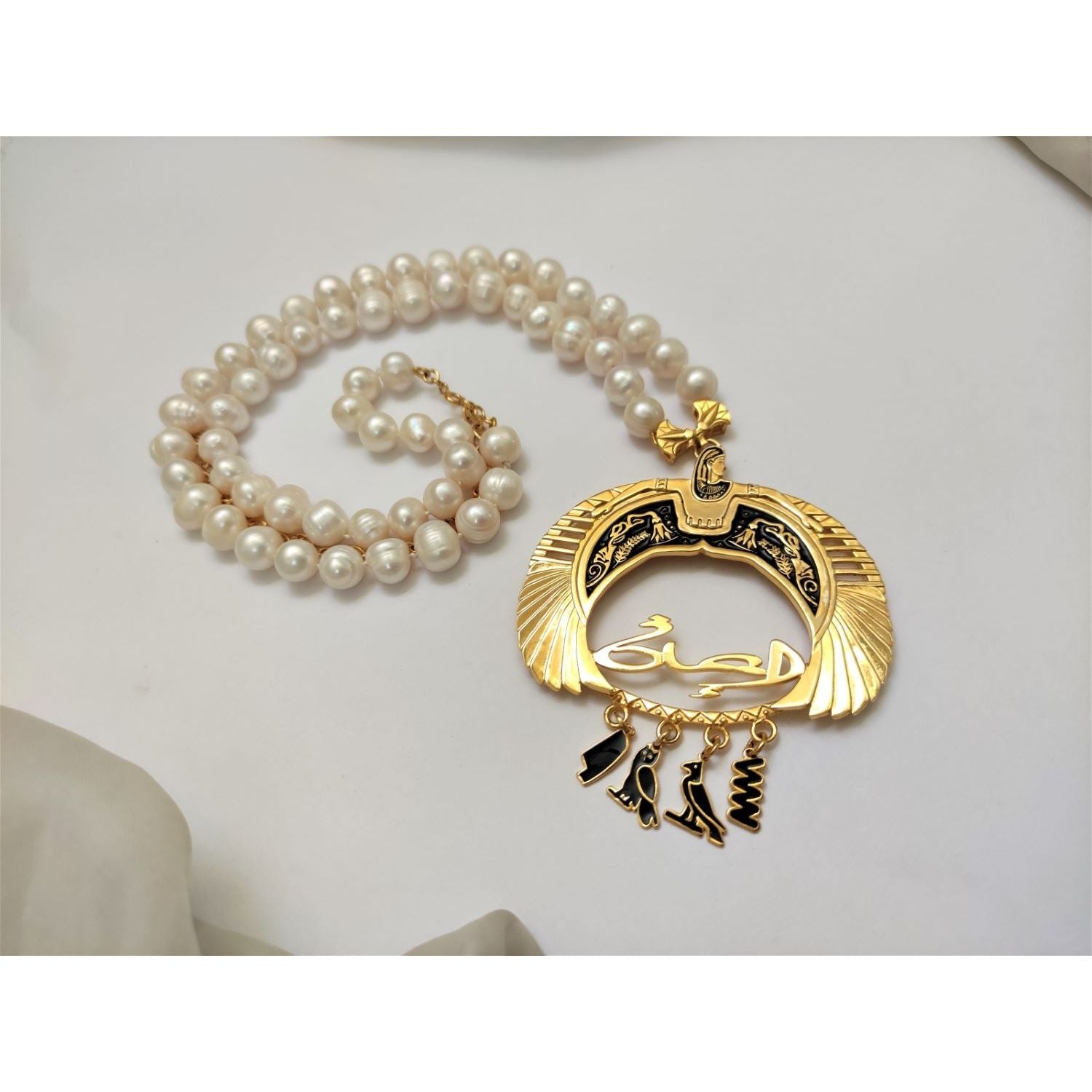 الحجر المصنوع منه العقد لؤلؤ مزارع طبيعي مقاس 9/10 مم ، متاح تغيير اللؤلؤ لأى نوع حجر أخر حسب رغبة العميل، ومن الممكن أن يكون دور واحد أو دورين.
