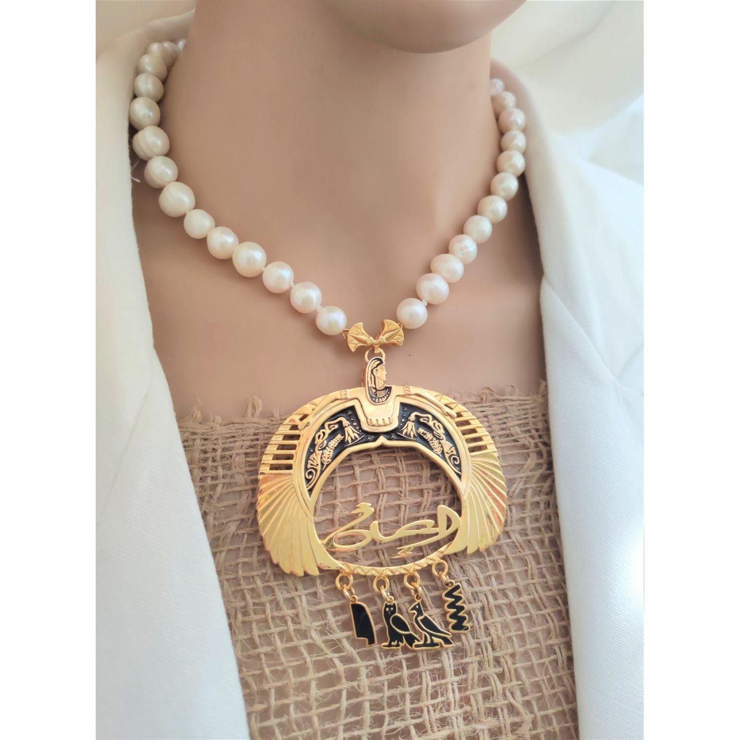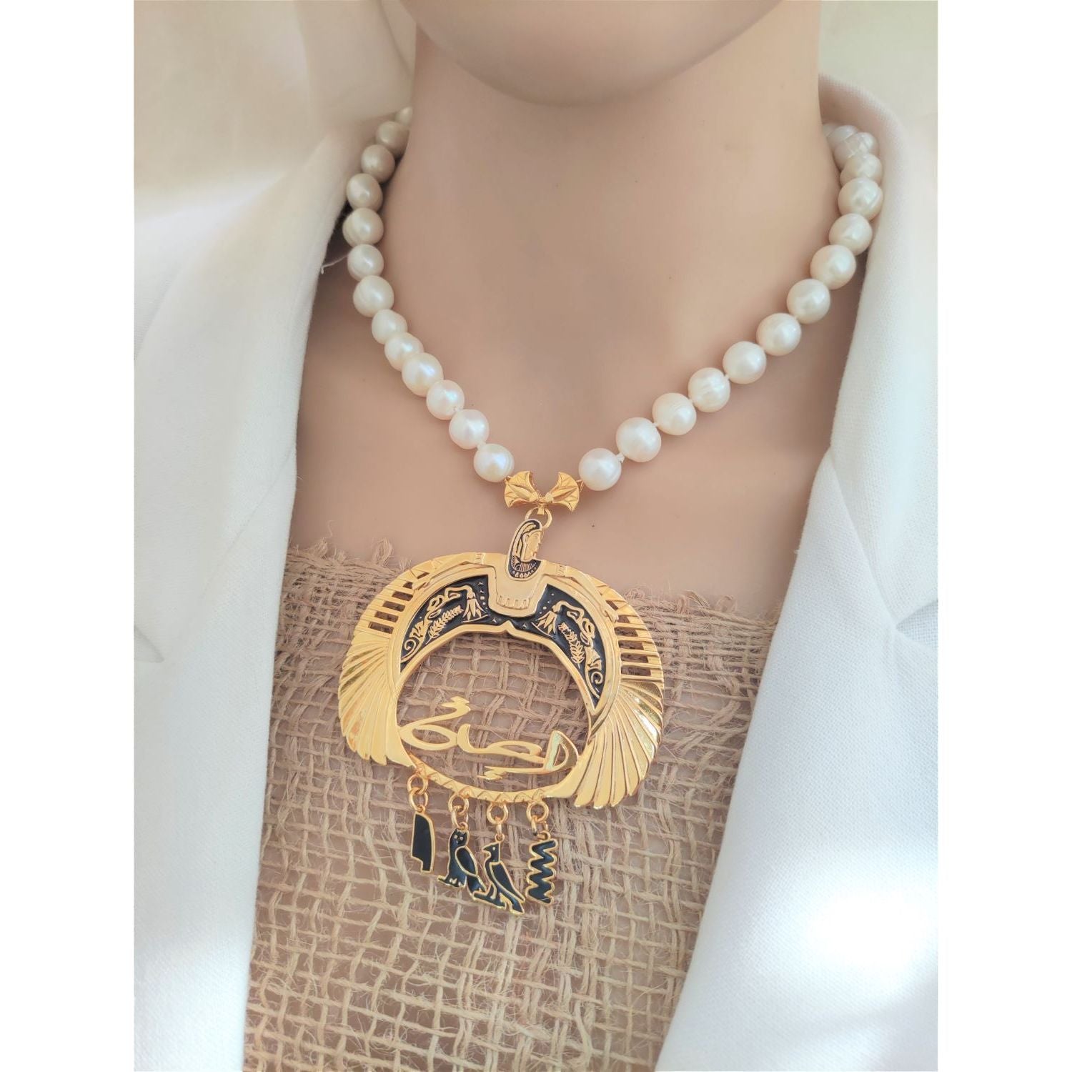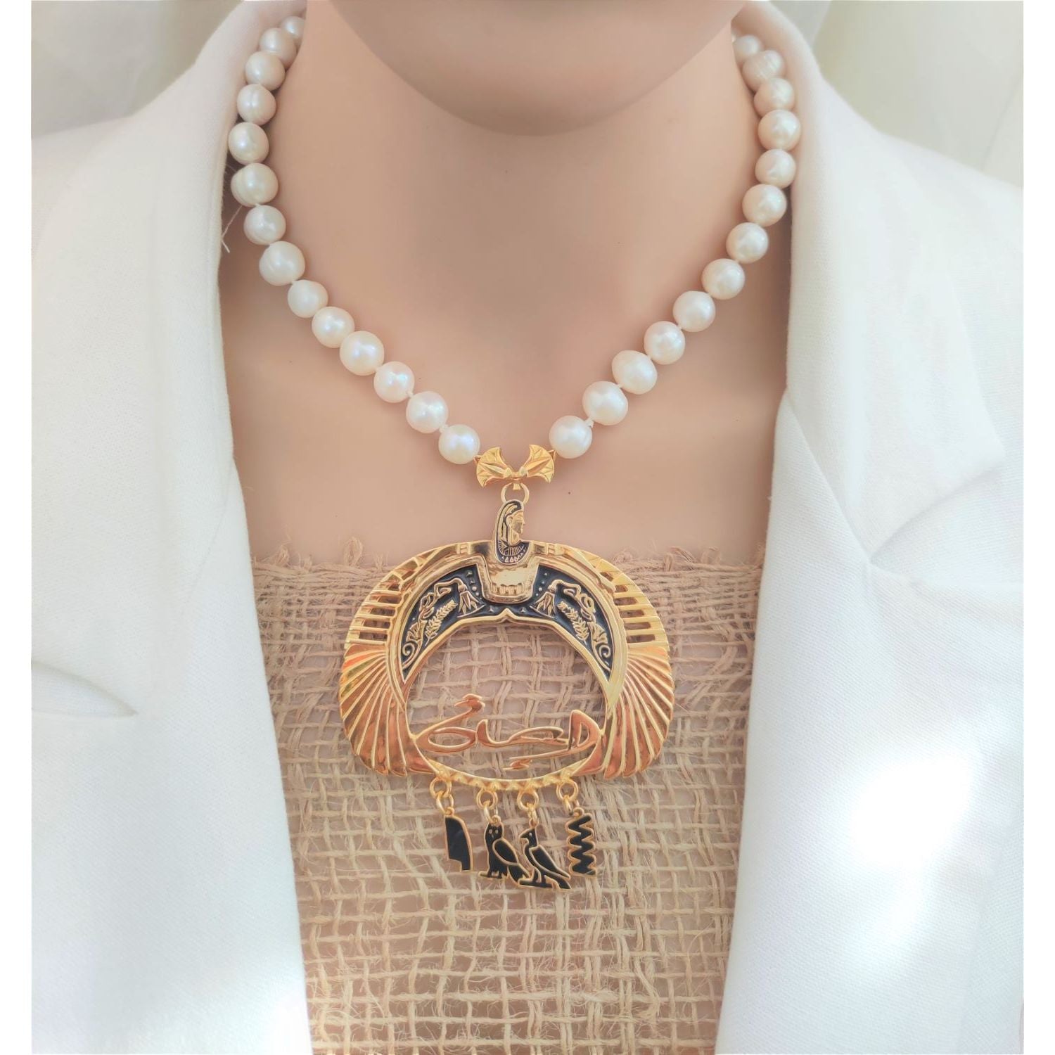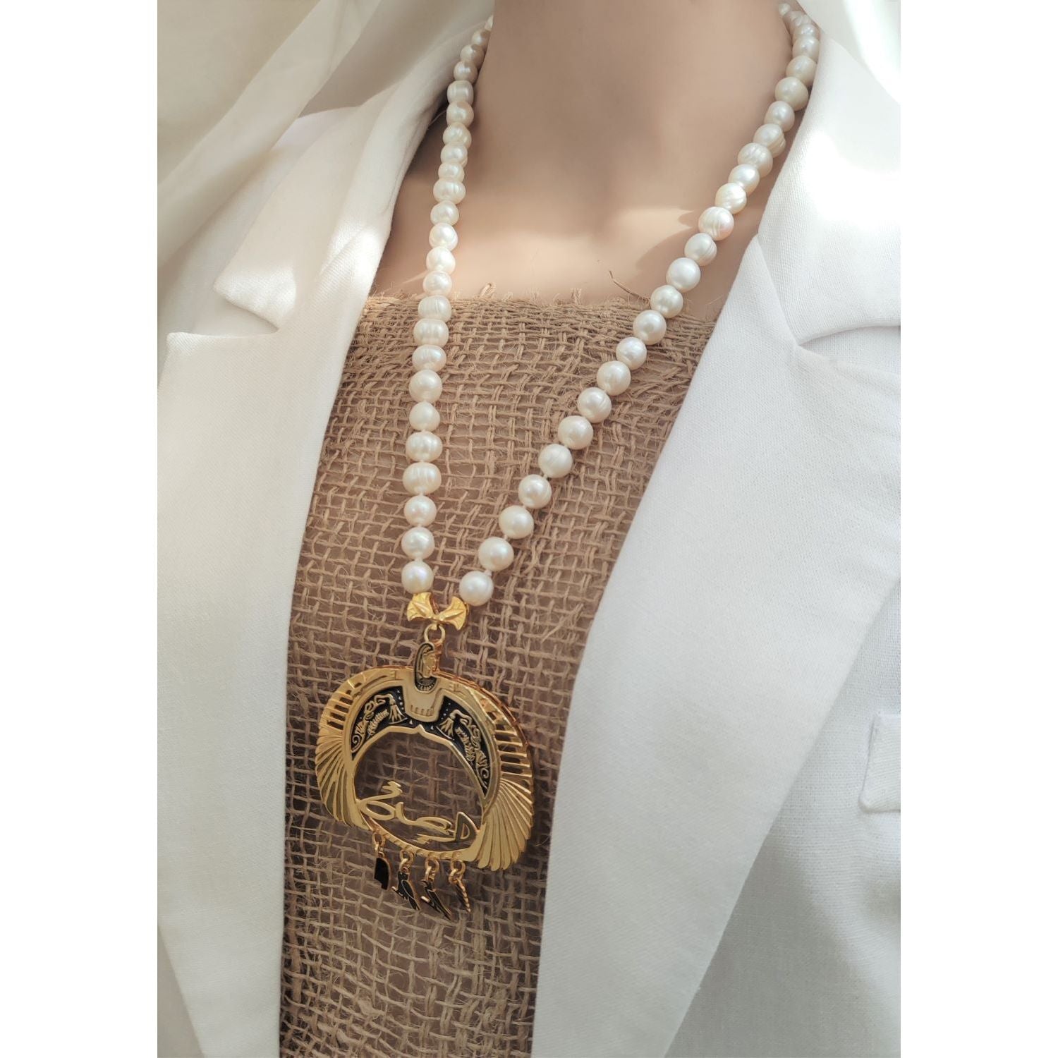 الحجر المصنوع منه العقد لؤلؤ مزارع طبيعي مقاس 9/10 مم ، متاح تغيير اللؤلؤ لأى نوع حجر أخر حسب رغبة العميل، ومن الممكن أن يكون دور واحد أو دورين.