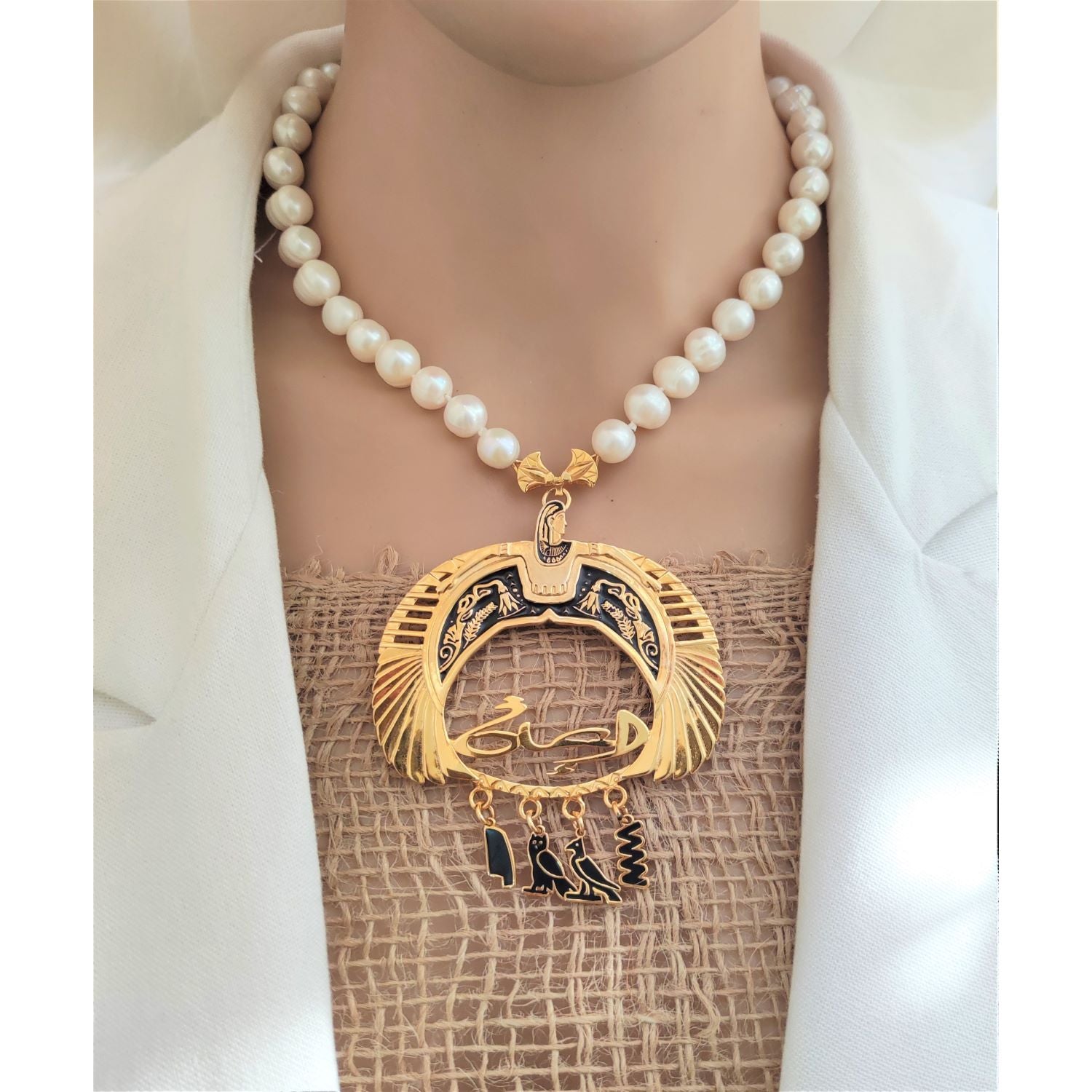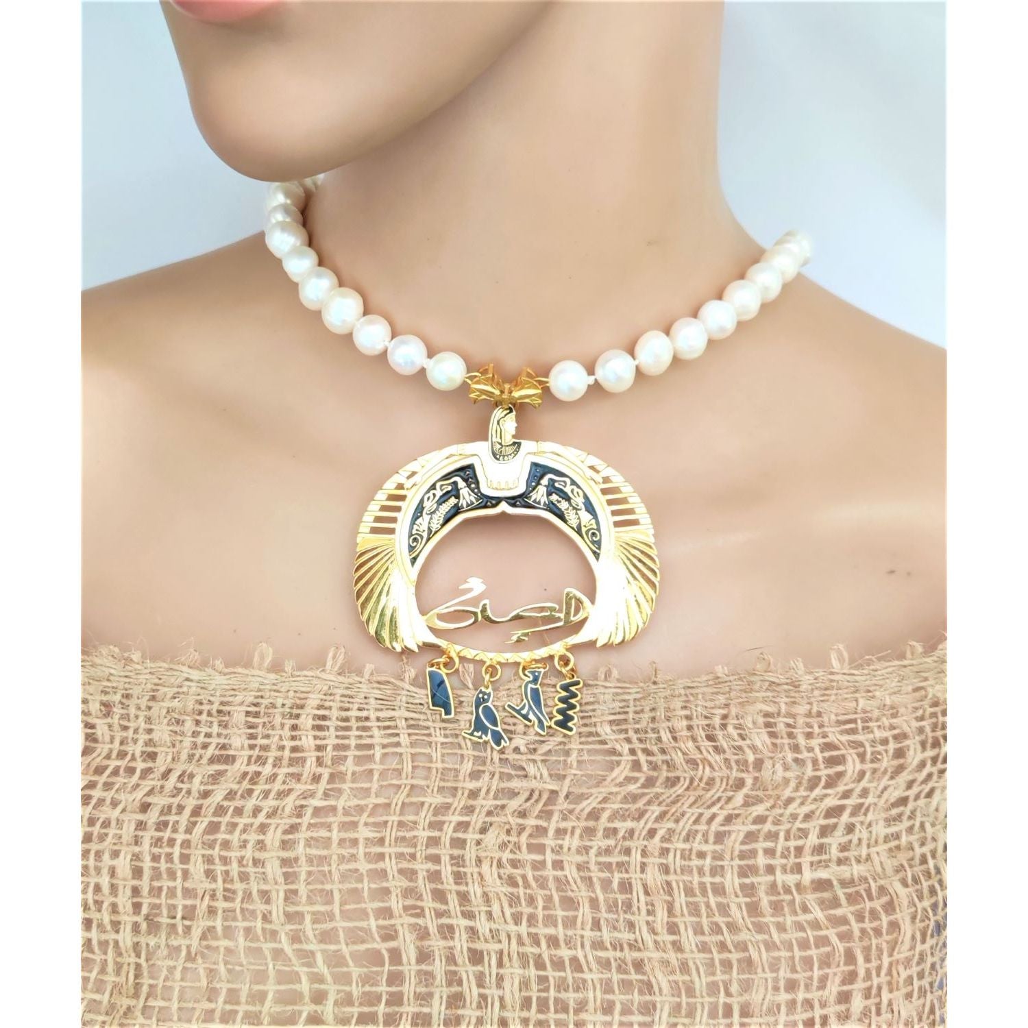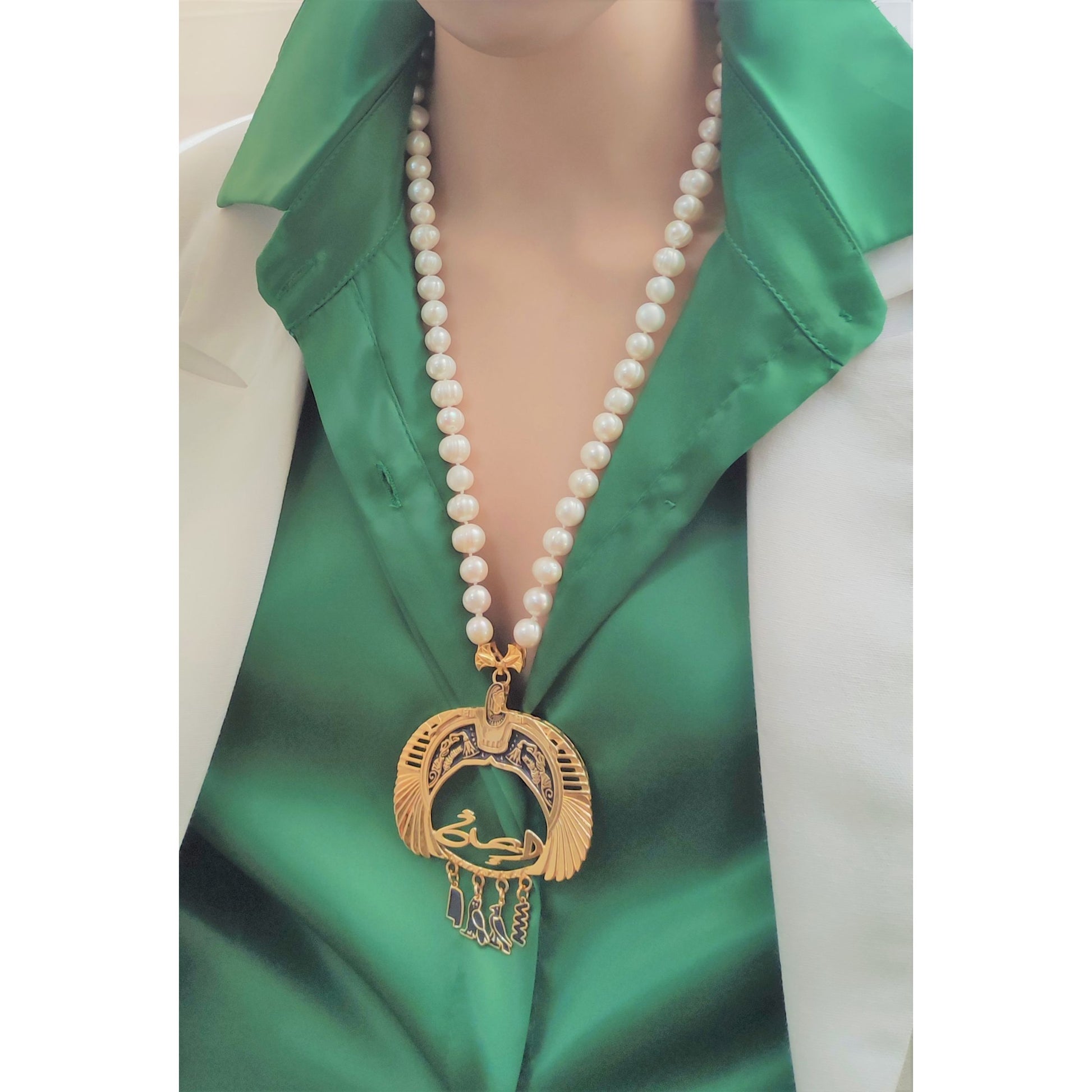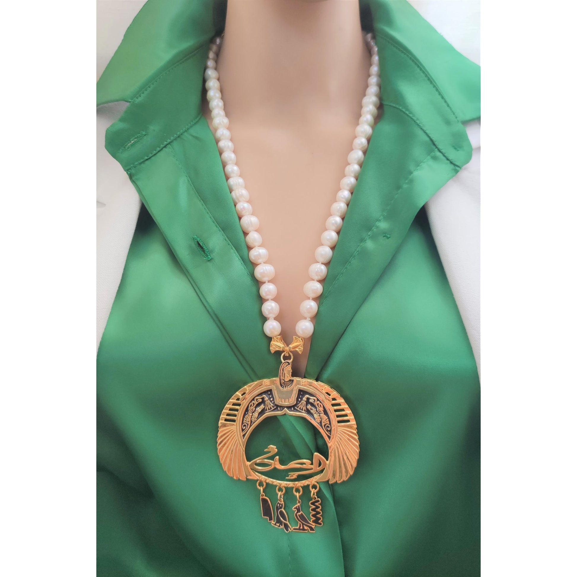 الحجر المصنوع منه العقد لؤلؤ مزارع طبيعي مقاس 9/10 مم ، متاح تغيير اللؤلؤ لأى نوع حجر أخر حسب رغبة العميل، ومن الممكن أن يكون دور واحد أو دورين.