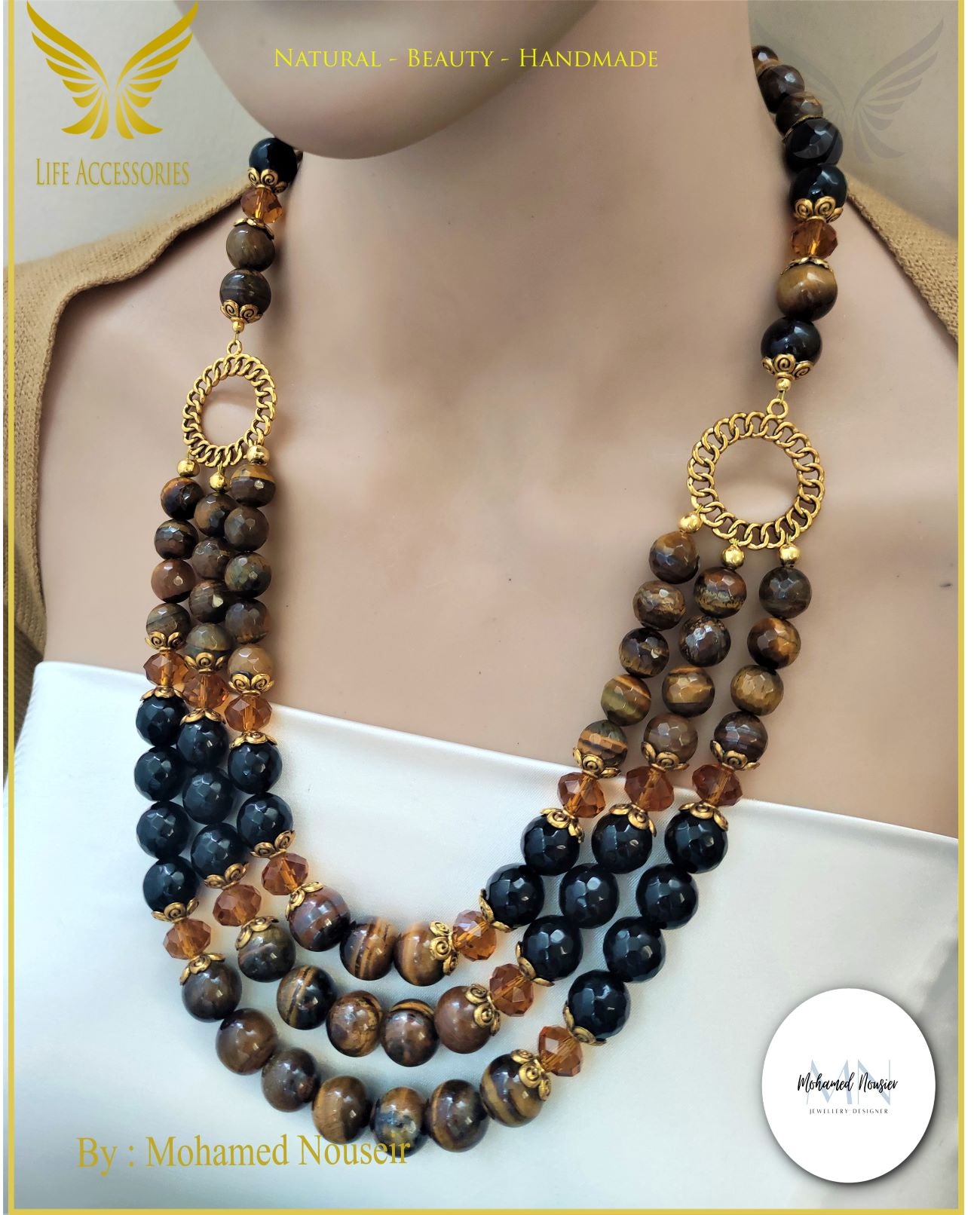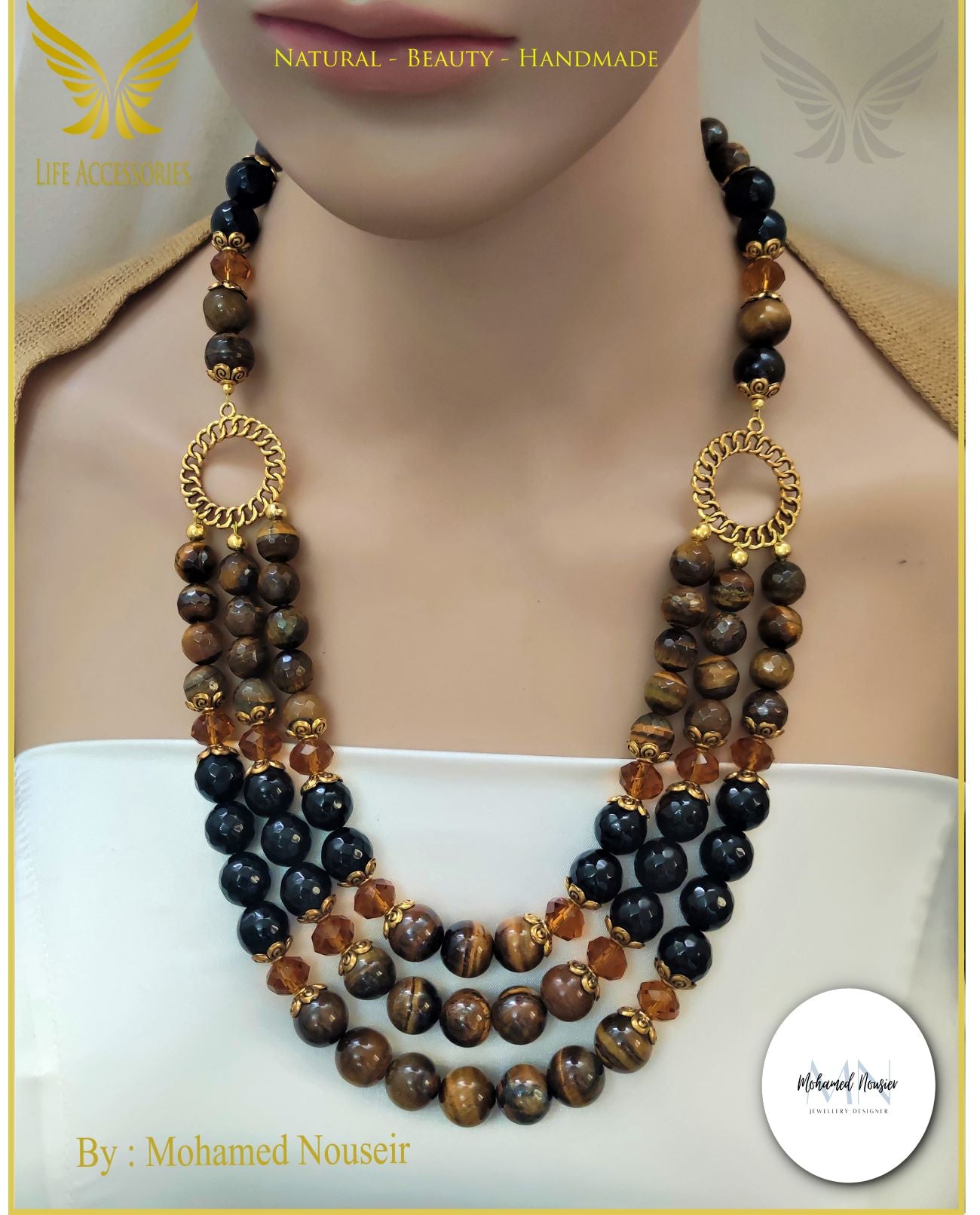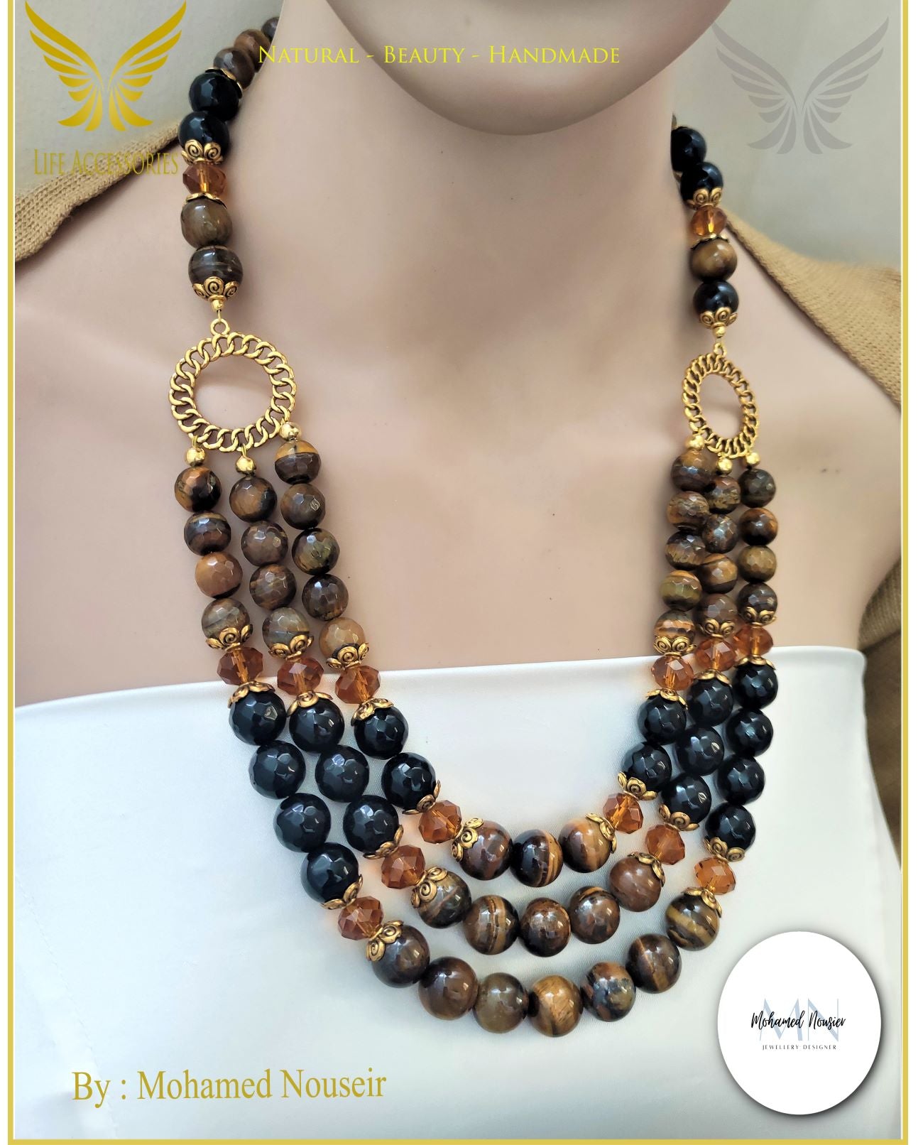 الاحجار المستخدمه : حجر عين القط و عقيق طبيعي و كريستال